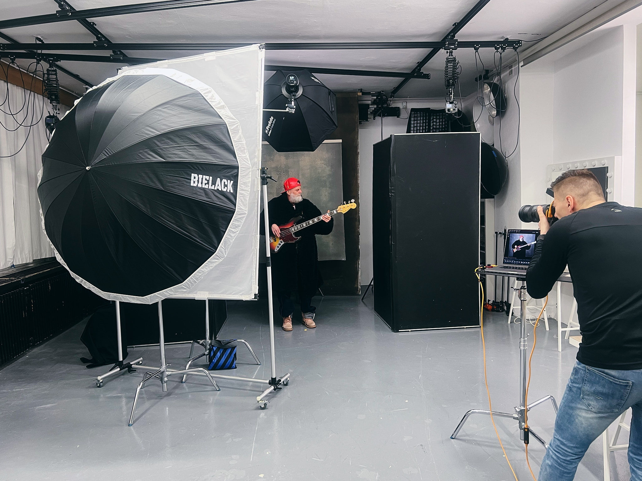 Długo zastanawialiśmy się, kogo zaprosić do roli modela w tej sesji, bo na zdjęciach Annie Leibovitz nie ma przypadkowych, „zwykłych” ludzi. Postawiliśmy na znajomego nam lubelskiego biznesmena, który prócz sukcesu w biznesie jest również (a może głównie) artystą muzykiem. Wiem to, bo dosłownie chwilę temu mieliśmy okazję wspólnie grać na szkolnej akademii🥹