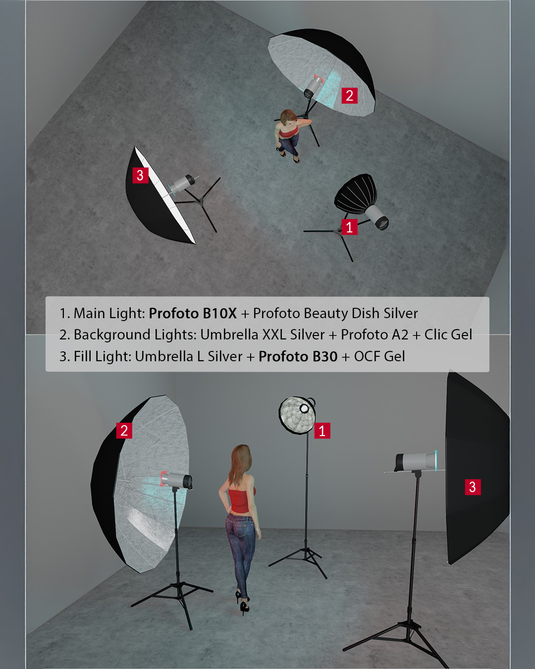 3. Kontrast, kolor i dramat – beauty dish + XXL parasol + filtry