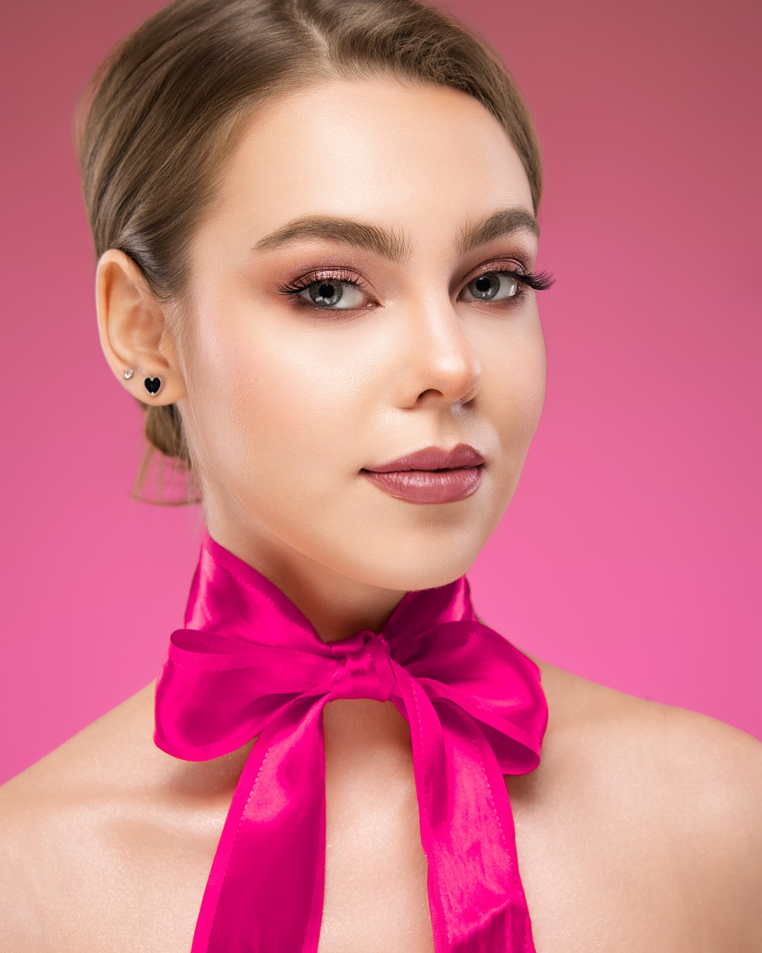 Profoto B10X w składanym Profoto Beauty Dish Silver. Twarde, skolimowane, podkreślające kości policzkowe i strukturę twarzy. Światło, które kocha piękne rysy. W przypadku Anastasiii – strzał w dziesiątkę.