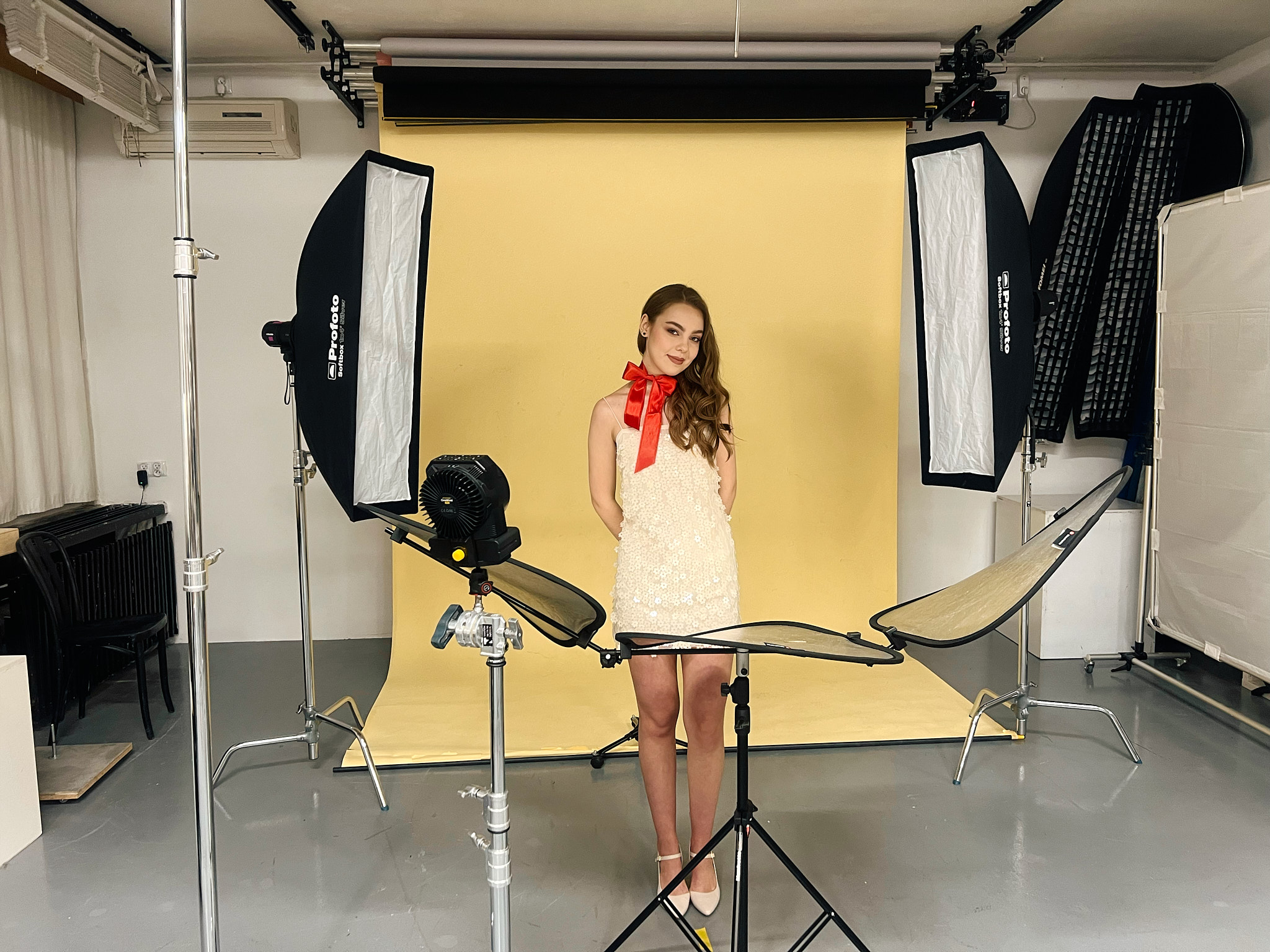 Całość rozegrała się w TNStudio. Chciałem pokazać trzy różne setupy oświetleniowe – od maksymalnego minimalizmu, po kontrolowany chaos kolorów i ostre światło beauty. Modelka Anastasiia, wizaż Olesii, stylizacja dopracowana pod kolorystykę… a ja w roli operatora, fotografa i człowieka od wymyślania problemów, które ekipa musi potem rozwiązać.